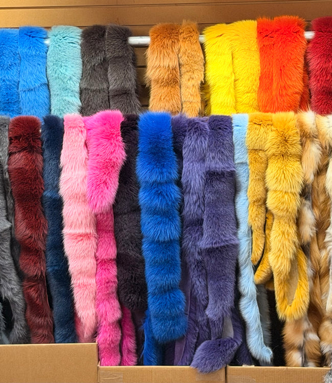 Dyed Blue Fox Tail Parka Hood Ruffs